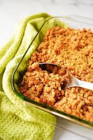 Instructions: Layer the apples, prepare the custard filling, and top with a crumble mixture. Bake until the custard is set, and the topping is golden.